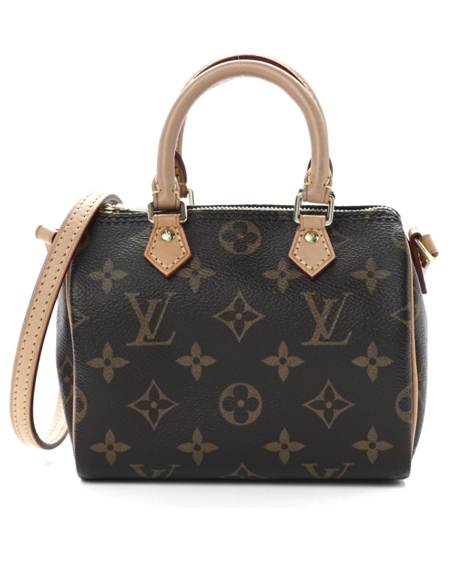 The LV Monogram Nano Speedy is the epitome of luxury in a petite package. Its classic LV monogram on toile canvas exudes timeless style. Accented with vachetta cowhide leather and polished brass links, it’s a blend of elegance and durability. The versatile design features both rolled leather handles and a crossbody strap, making it perfect for any occasion. The cocoa fabric interior adds a sophisticated touch to this must-have accessory for fashion enthusiasts.