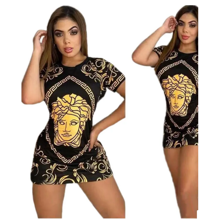 Replica Medusa Inspired Casual Print Logo Mini Dress