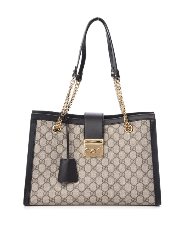 This Padlock Small GG Shoulder Bag is a tribute to Gucci’s rich history. Made from the iconic beige/ebony GG Supreme canvas, paired with elegant black leather details, it’s a timeless piece. The gold-toned hardware adds a luxurious touch. Its unique key lock closure, straight from Gucci’s archives, and the detachable leather key case blend security with style. The interior open pocket keeps essentials organized, while the chain shoulder strap ensures comfort and versatility. A classic accessory for any fashion lover.