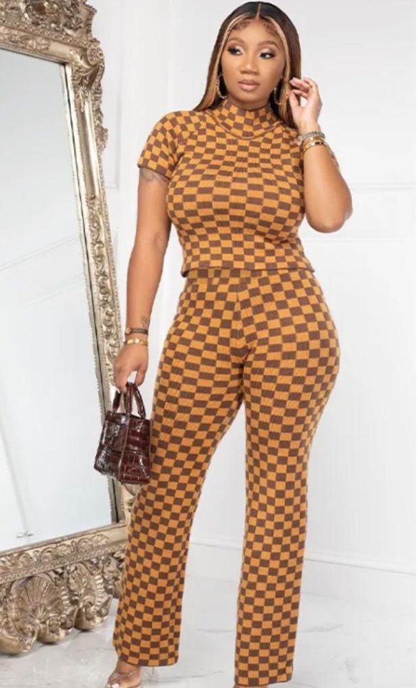 Strike the perfect balance between comfort and style with the Plaid Women’s Set. Ideal for spring and summer, its high-stretch blend of spandex and polyester ensures a flattering fit. The high-waisted flare pants with an elastic waistband offer both fashion and ease, while the o-neck top with short sleeves keeps things casual yet chic. The plaid pattern adds a classic touch, making this set a versatile choice for women.